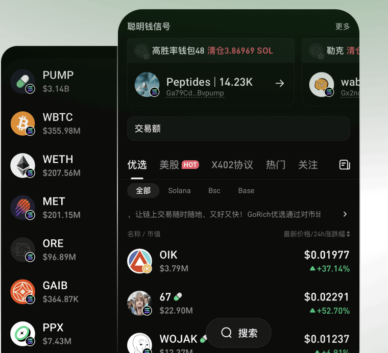 GoRich 优选是 GoRich 专业团队调研筛选出的市场上具有高度确定性、潜力巨大的热门代币“二段机会”。不同于第一阶段的高风险 PVP 或老币波动性低的情况,GoRich 优选兼具高确定性与较大盈利空间。筛选依据包括:
